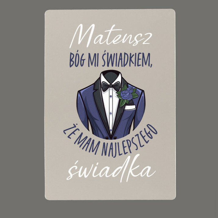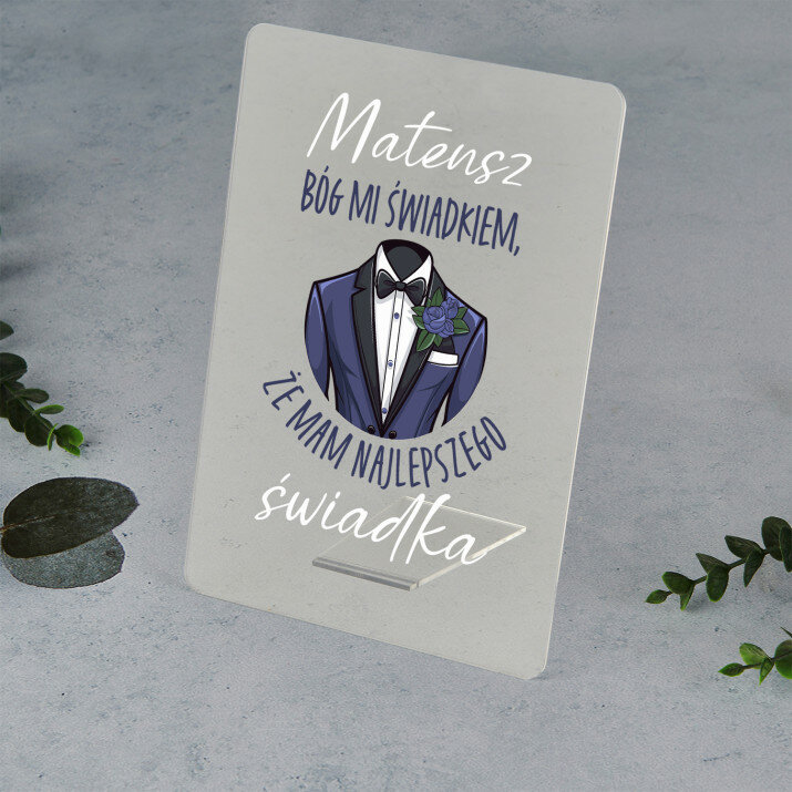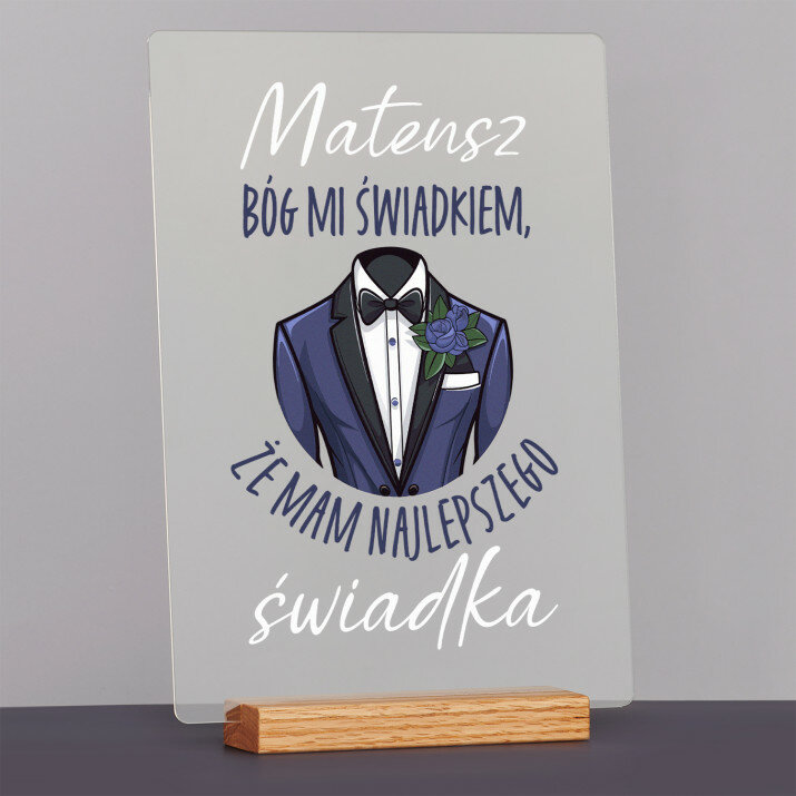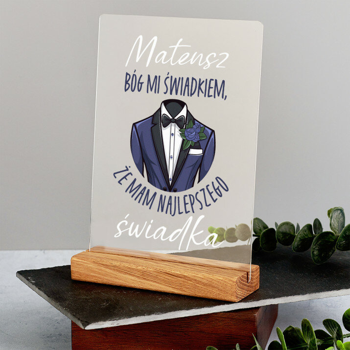Ten wydruk na szkle akrylowym z napisem 'Mam najlepszego świadka' to uroczy prezent dla osoby, która pełni tak ważną rolę w naszym życiu.
