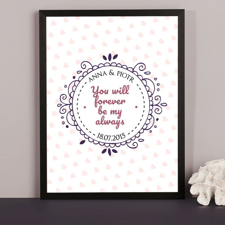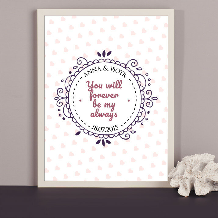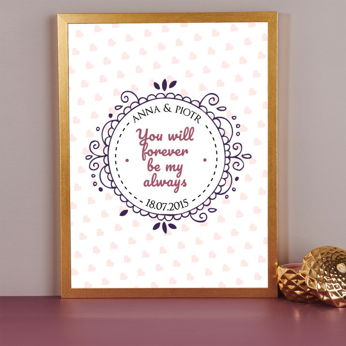 Wydruk w ramce to efektowny plakat, którego treść jest w pełni personalizowana i dopasowana do ważnej okazji. Taki podarunek podkreśla wyjątkowy charakter uroczystości i pozostaje fajną pamiątką na lata. Wystarczy, że podasz nam informacje do wstawienia, a my wyczarujemy dla Ciebie upominek, który zaskoczy Twoich bliskich!Wykonanie