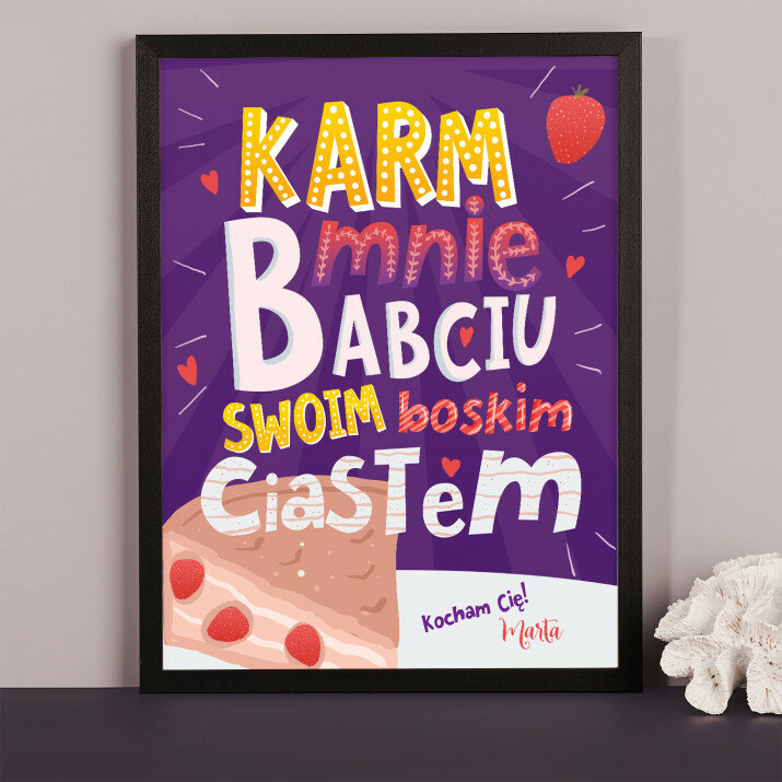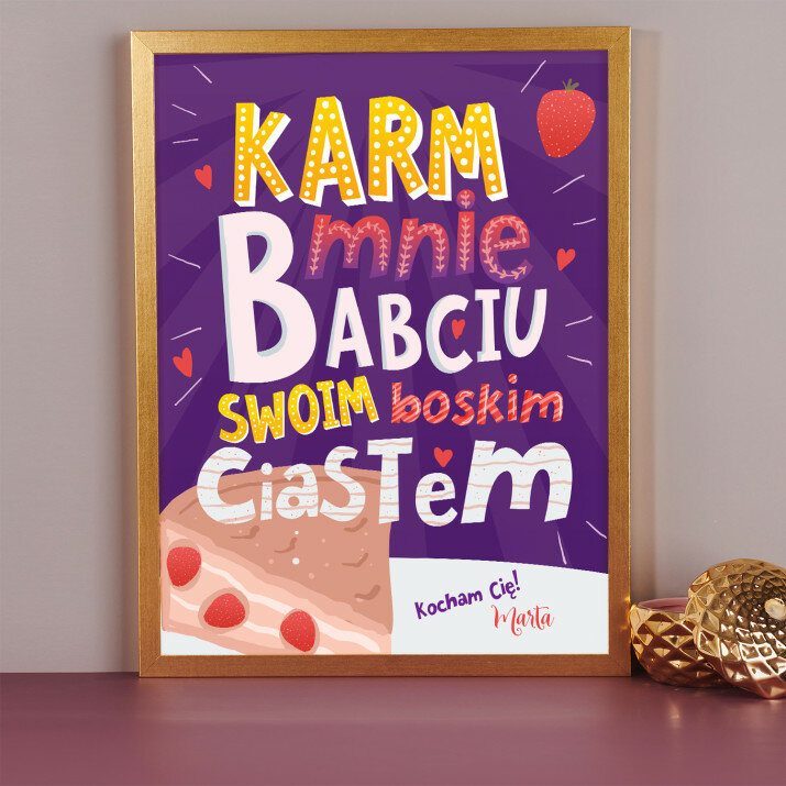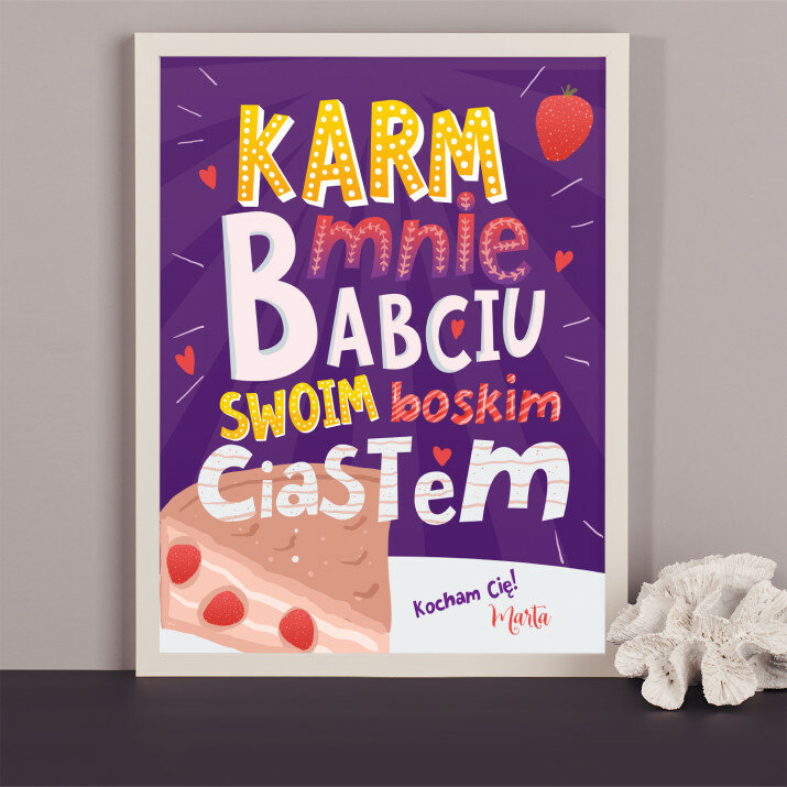 Każda babcia lubi karmić swoje wnuki, nawet wtedy kiedy już nie mogą zmieścić nic więcej :D Ten wydruk idealnie się sprawdził jako prezent na Dzień Babci! Wszyscy byli pod wrażeniem! Jakość wydruku na bardzo wysokim poziomie a stylowa rama dopełnia całość! Gorąco polecam!