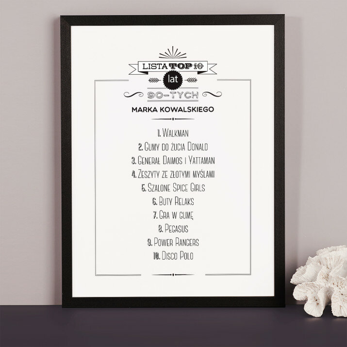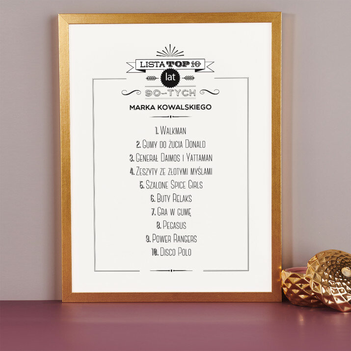 Wydruk w ramce to efektowny plakat, którego treść jest w pełni personalizowana i dopasowana do ważnej okazji. Taki podarunek podkreśla wyjątkowy charakter uroczystości i pozostaje fajną pamiątką na lata. Wystarczy, że podasz nam informacje do wstawienia, a my wyczarujemy dla Ciebie upominek, który zaskoczy Twoich bliskich!Wykonanie