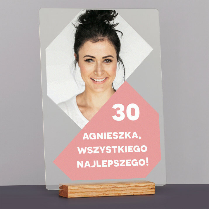 Wydruk na szkle akrylowym A4 z podstawką drewnianą