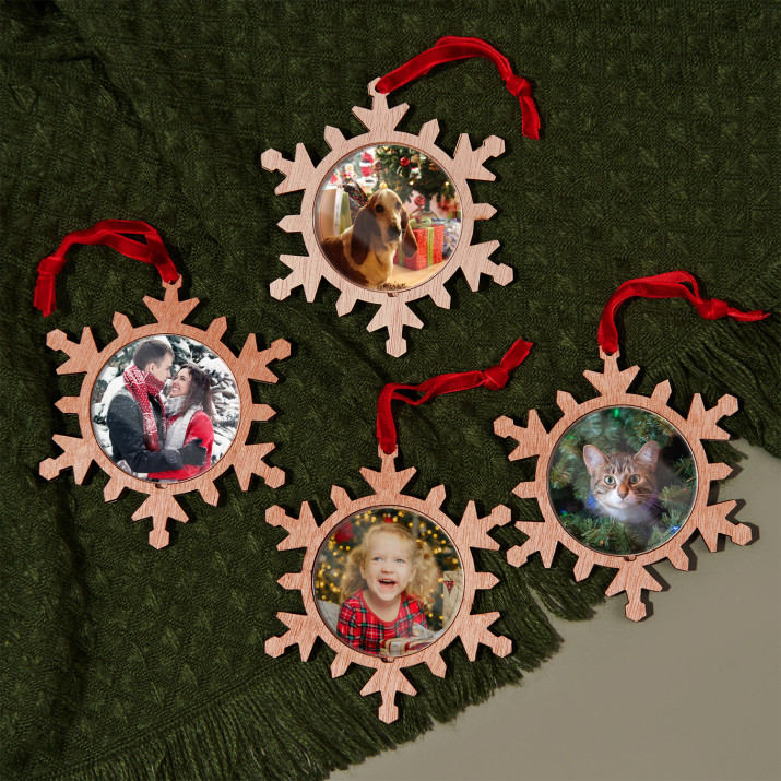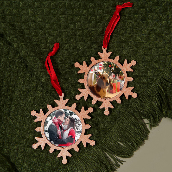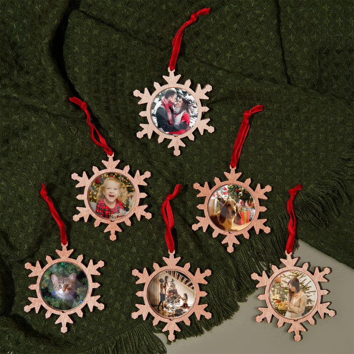 Poczuj magię świąt i zawieś na choince wyjątkowe zdjęcie! Zawieszka w kształcie płatka śniegu to oryginalny pomysł na wystrój świątecznego drzewka. Pięknie będzie się prezentować na tle bombek i łańcuchów. Możesz zrobić bliskiej osobie niespodziankę i podarować jej taki drewniany ornament z okazji pierwszych wspólnie spędzanych świąt. Zawieszka dostępna jest w czterech opcjach: 1, 2, 4 albo 6 sztuk.Szczegółowe informacje: