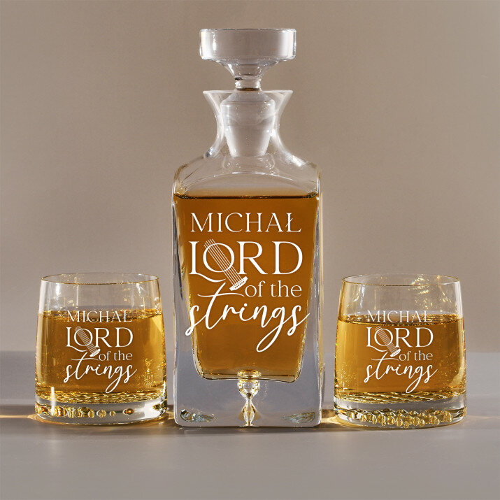 Zestaw z grawerowaną karafką i szklankami dostępny w czterech wariantach:Karafka + 1 szklanka