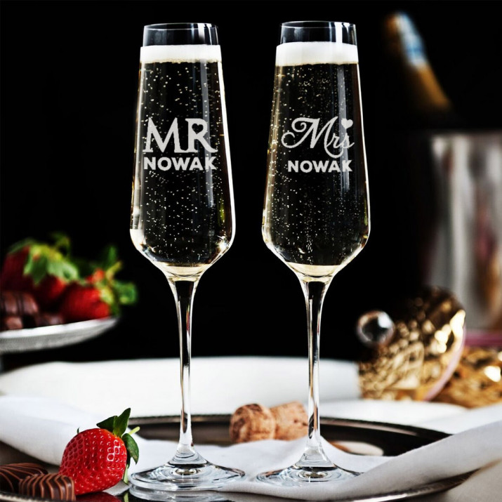 Eleganckie kieliszki do szampana z wybranym grawerem laserowym.Kieliszki do szampana wykonane są z wysokiej jakości szkła, formowane ręcznie. Wyprodukowane w 100% w Polsce przez najlepszego producenta szkła, firmę KROSNO. Produkty z dobraną mniejszą pojemnością i zwężającą się czarką u góry sprawia że posiadają one wyjątkowy kształt i zaspokoją wrażenia estetyczne najbardziej wymagających klientów.