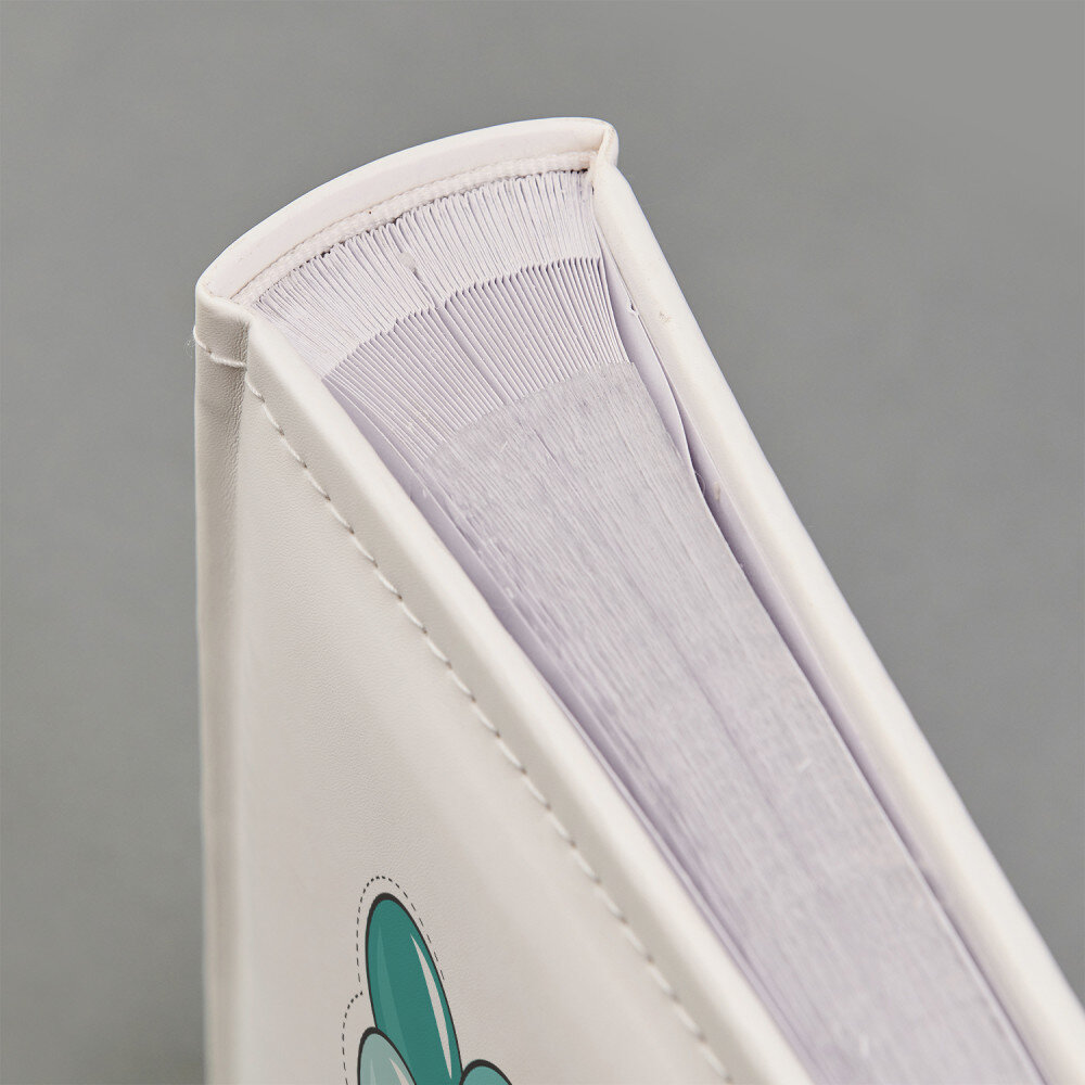 składający się z 30 kart (60 stron). Skórzana okładka jest lekko błyszcząca. Skóra jest ekologiczna, gładka w dotyku w kolorze białym. Album jest prosty i klasyczny, pasujący do wielu okazji.