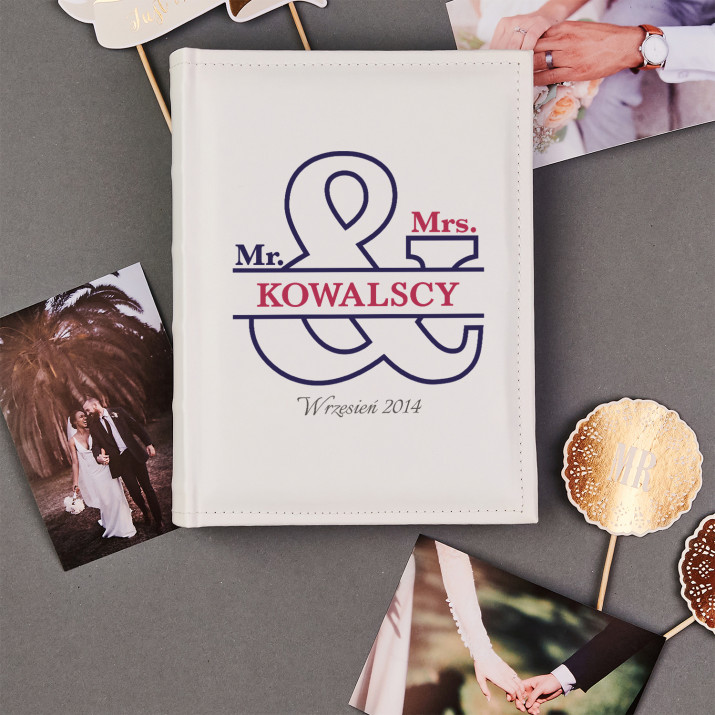 Personalizowany album na zdjęcia Mr&Mrs to doskonały sposób na przechowywanie wspólnych chwil. Wyjątkowy prezent dla nowożeńców.