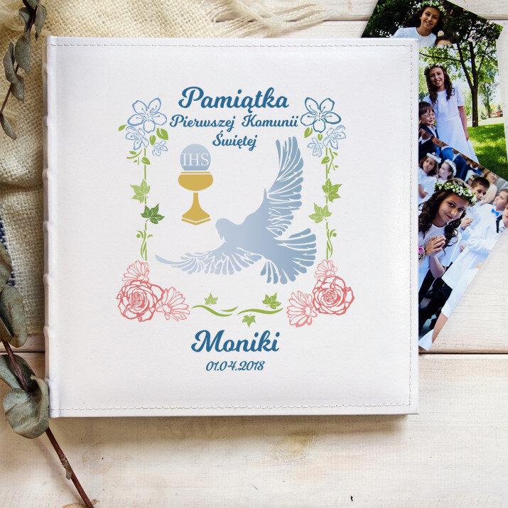Ten album to skarbnica wspomnień z Komunii. Personalizacja czyni go nie tylko piękną, ale także niezastąpioną pamiątką.