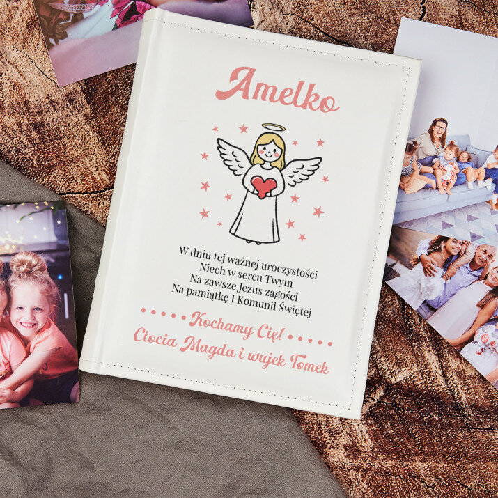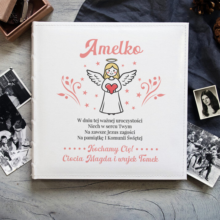 Życzenia na komunię aniołek dziewczynka - Personalizowany Album na zdjęcia