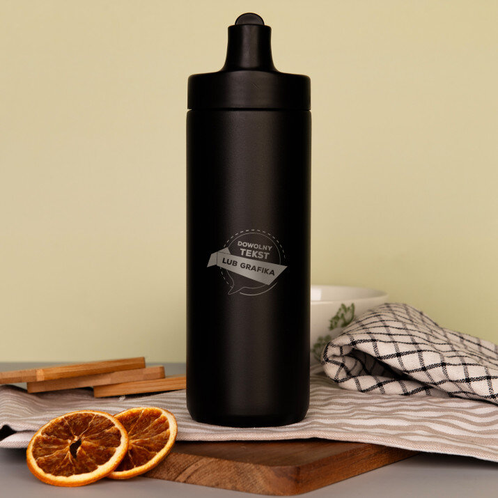 Wyjątkowy bidon w kolorze czarnym lub beżowym to nieoceniony towarzysz Twoich codziennych wypraw! Utrzymuje temperaturę napoju przez 8 godzin i nie przecieka, więc wygoda podczas użytkowania jest zapewniona! Bidon ma pojemność 500 ml. Niezwykle estetyczny design wyróżnia go i dodaje elegancji. Dodatkowo personalizowany grawer z pewnością zachwyci obdarowaną osobę! Jest to idealny prezent dla każdego, kto ceni praktyczne upominki.Wymiary: 70 x 235 mm