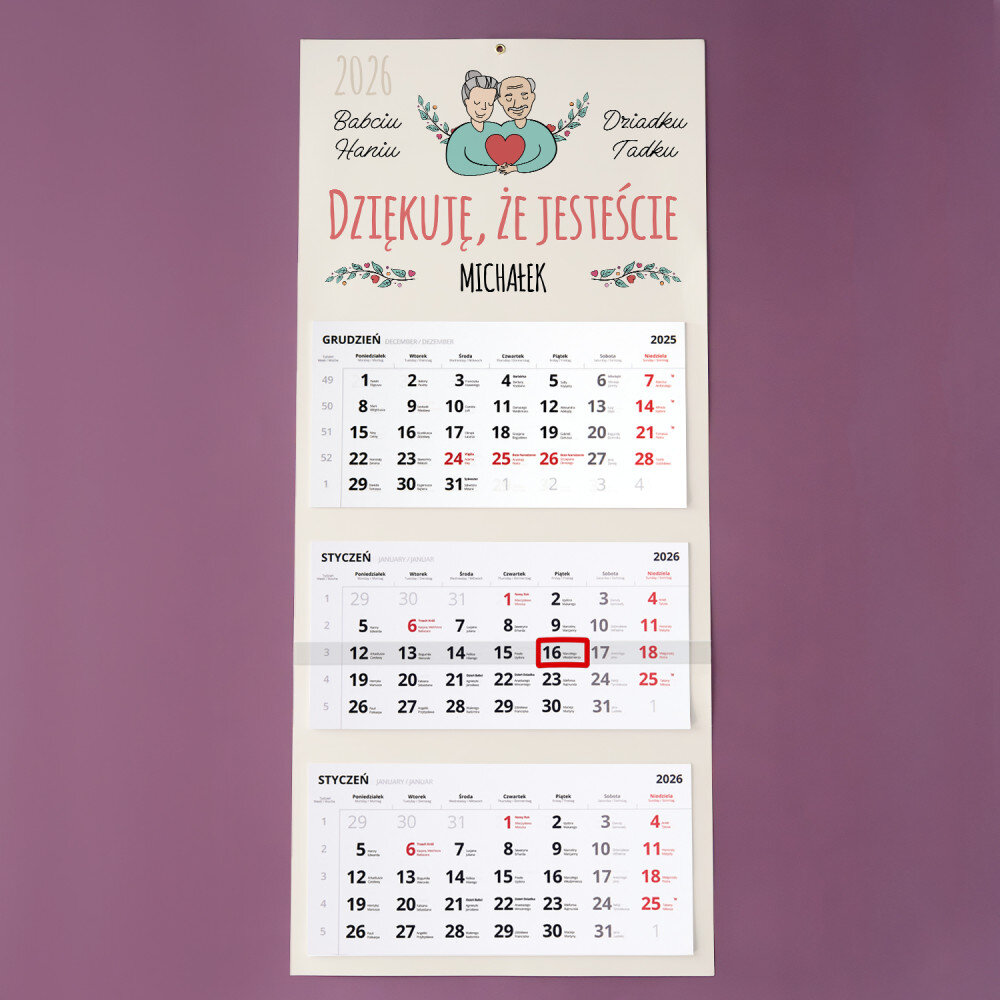 Babciu dziadku dziękuję - Kalendarz trójdzielny