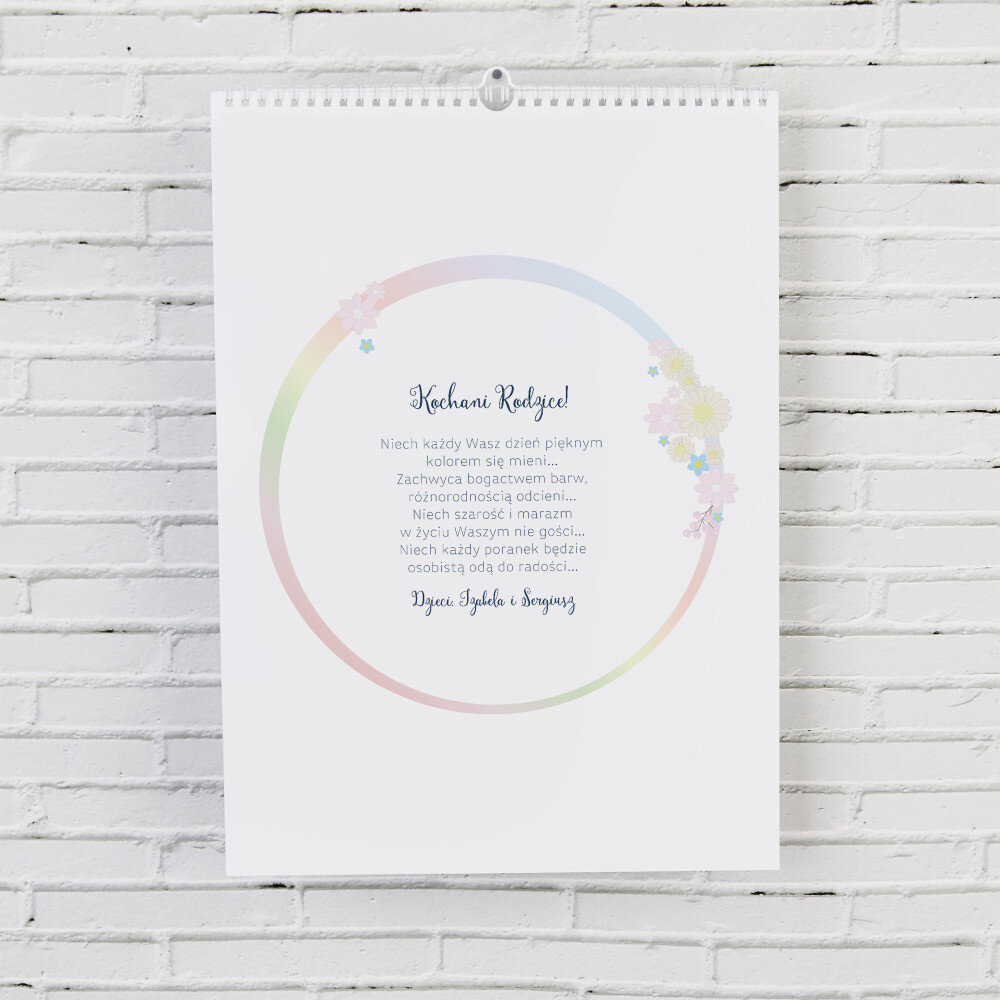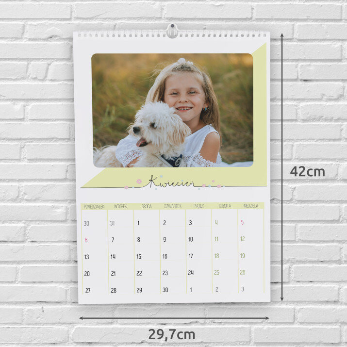 Kalendarz dostępny jest w 3 formatach do wyboru:- A3 (kartki o wymiarach 297 x 420 mm),