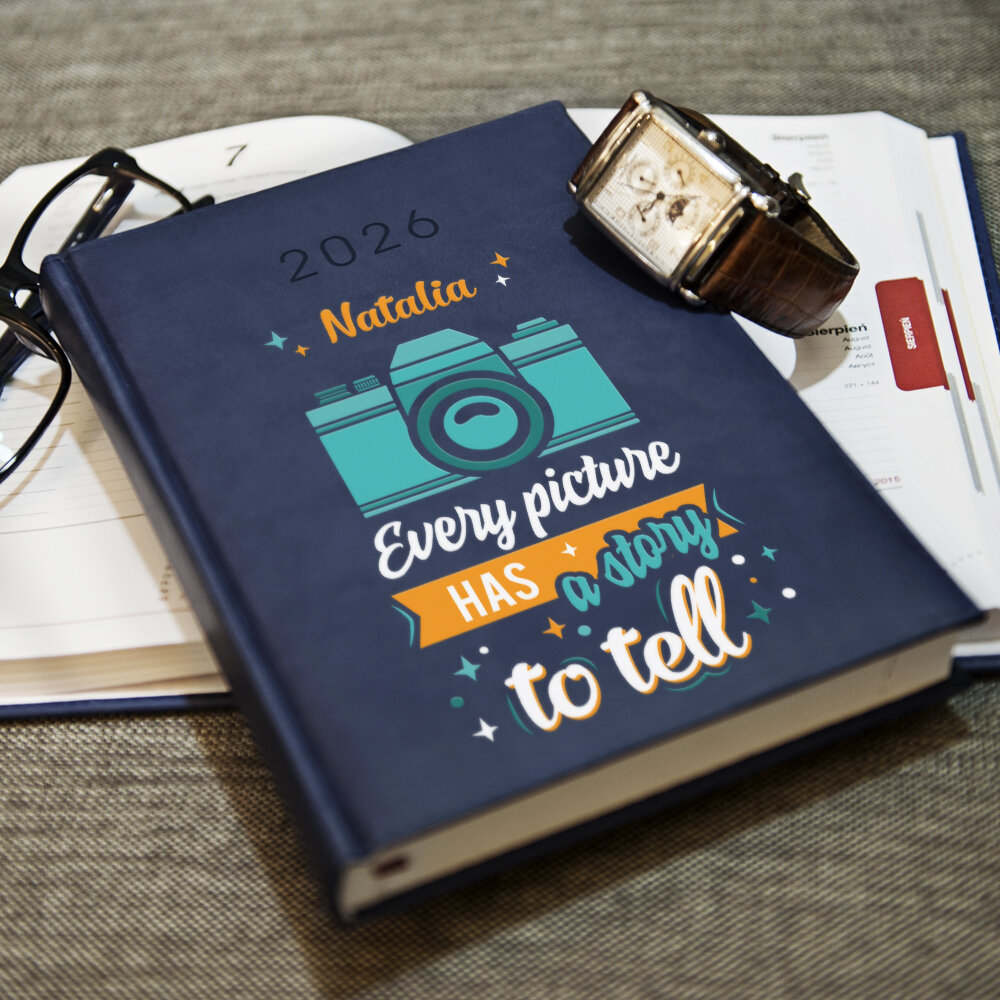 Wysokiej jakości kalendarz książkowy w formacie A5.