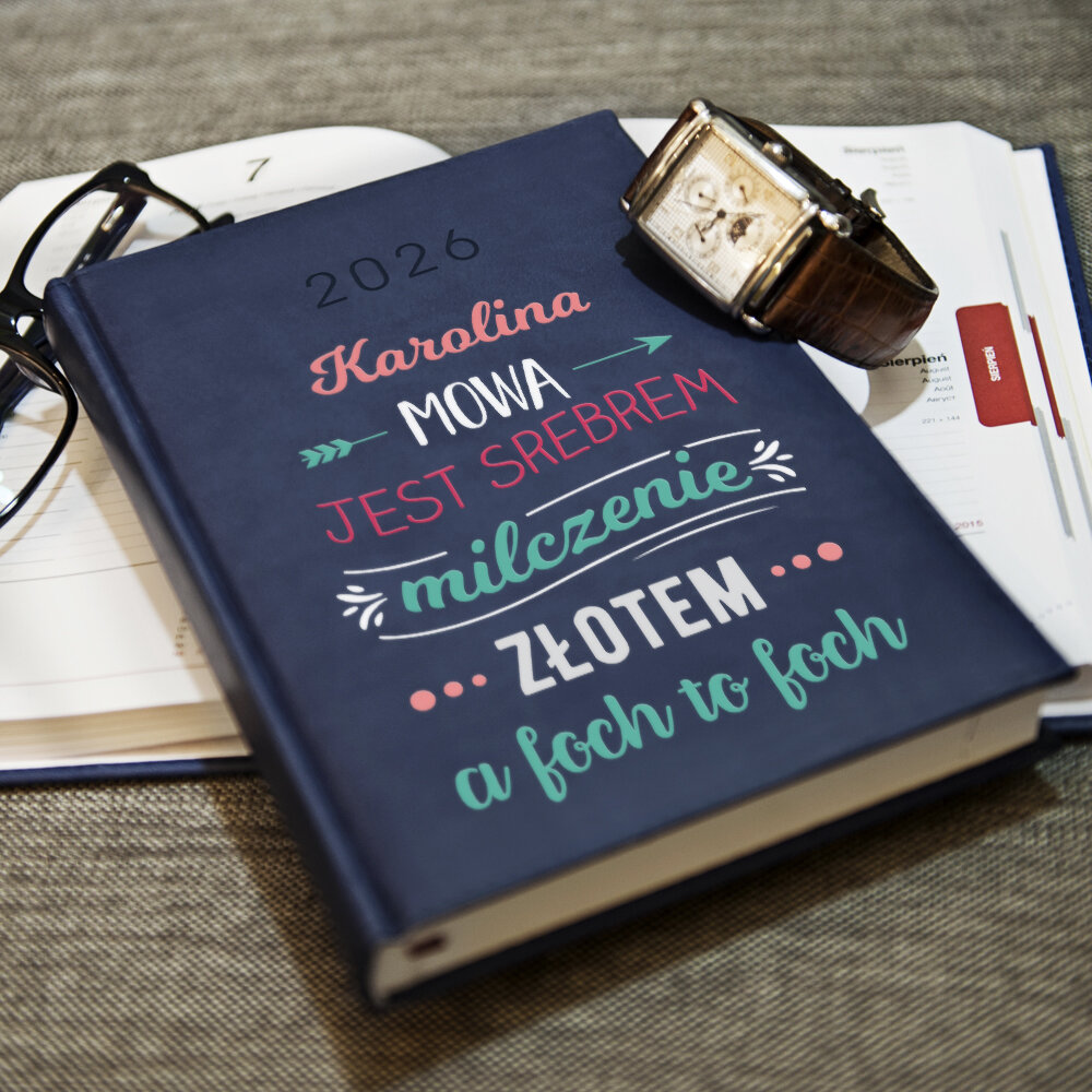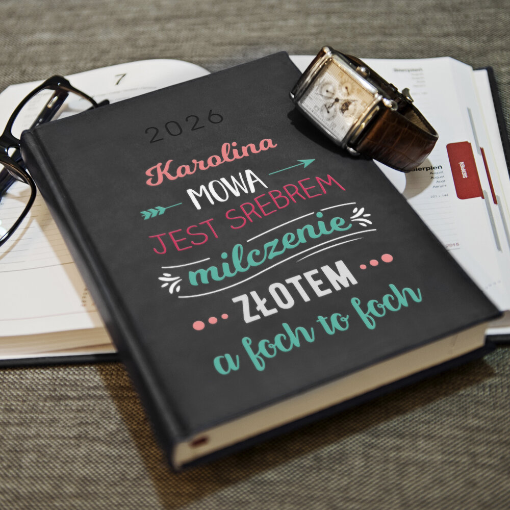 Wysokiej jakości kalendarz książkowy w formacie A5.