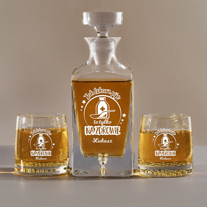 Zestaw z grawerowaną karafką i szklankami dostępny w czterech wariantach:Karafka + 1 szklanka
