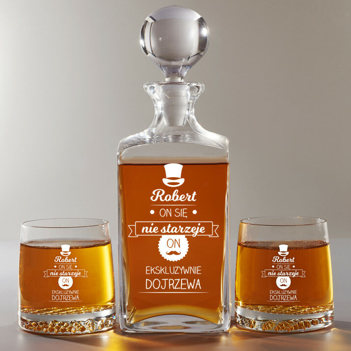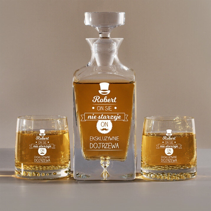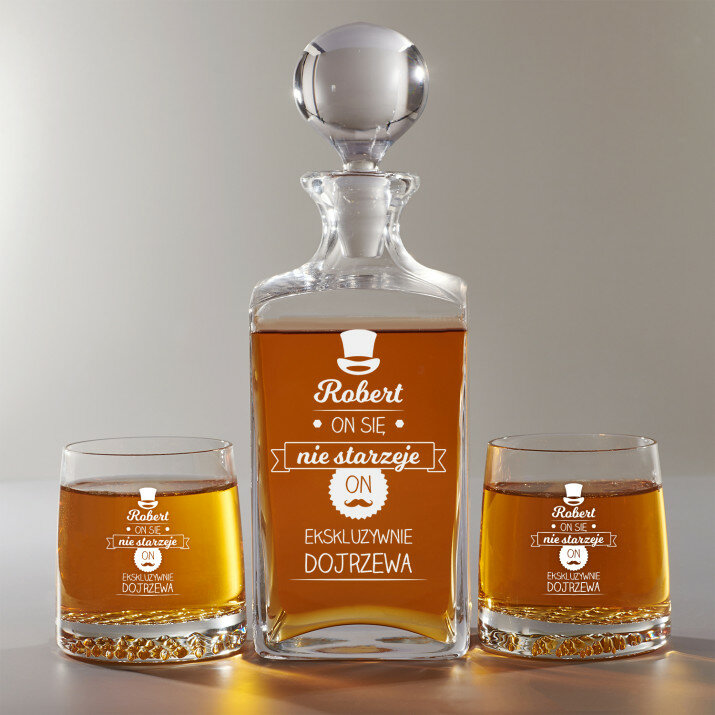 ON SIĘ NIE STARZEJE - ZESTAW GRAWEROWANA KARAFKA I SZKLANKI DO WHISKY