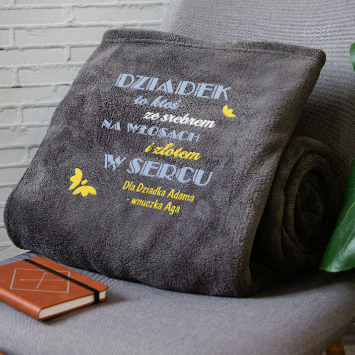 Prezent na Dzień Dziadka. Koc z haftem i piękną dedykacją sprawi, że Twojemu dziadkowi zrobi się bardzo miło, uroni łezkę w ukryciu i zawsze będzie wiedział, że jego wnuki o nim pamiętają. Okaż wdzięczność i miłość do dziadka za pomocą wyjątkowego prezentu.