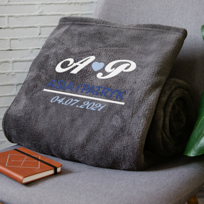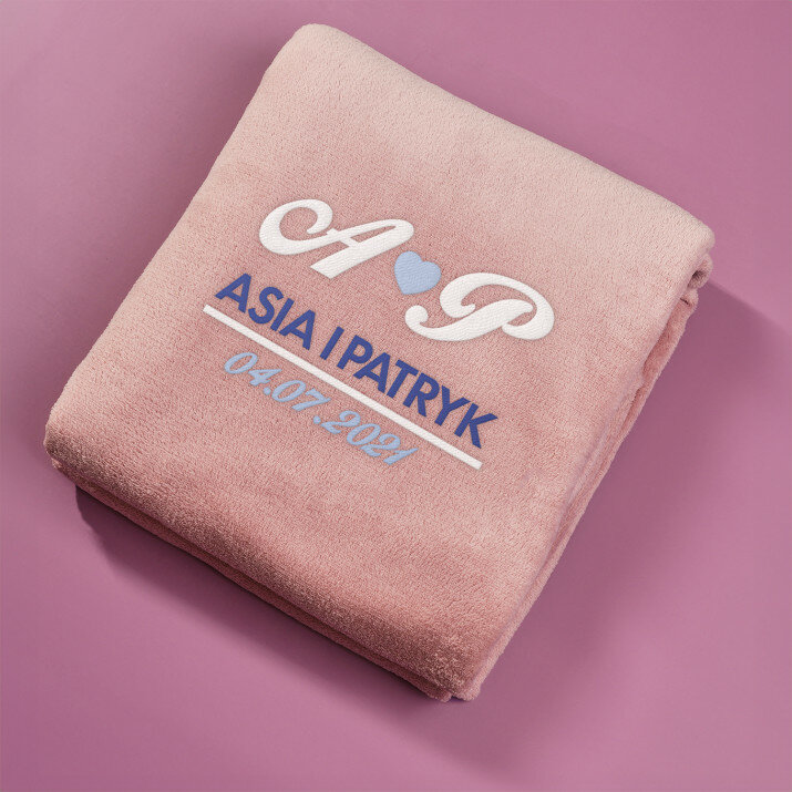 Koc o wymiarach 140 x 200 cm w kolorze szarym lub różowym, wykonany z wysokogatunkowego polaru, charakteryzuje się niepowtarzalną puszystością i miękkością, ozdobiony jednym z naszych personalizowanych haftowanych wzorów.