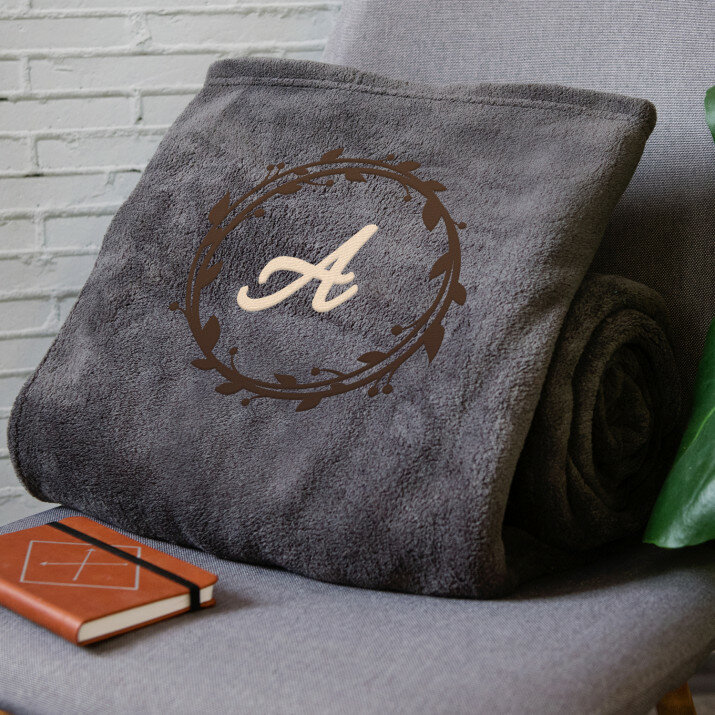 Koc o wymiarach 140 x 200 cm w kolorze szarym lub różowym, wykonany z wysokogatunkowego polaru, charakteryzuje się niepowtarzalną puszystością i miękkością, ozdobiony jednym z naszych personalizowanych haftowanych wzorów.