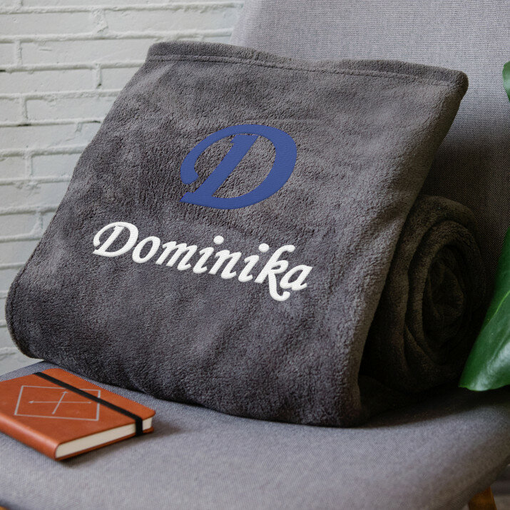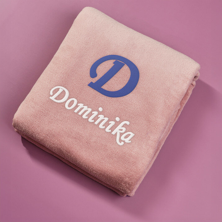 Koc o wymiarach 140 x 200 cm w kolorze szarym lub różowym, wykonany z wysokogatunkowego polaru, charakteryzuje się niepowtarzalną puszystością i miękkością, ozdobiony jednym z naszych personalizowanych haftowanych wzorów.