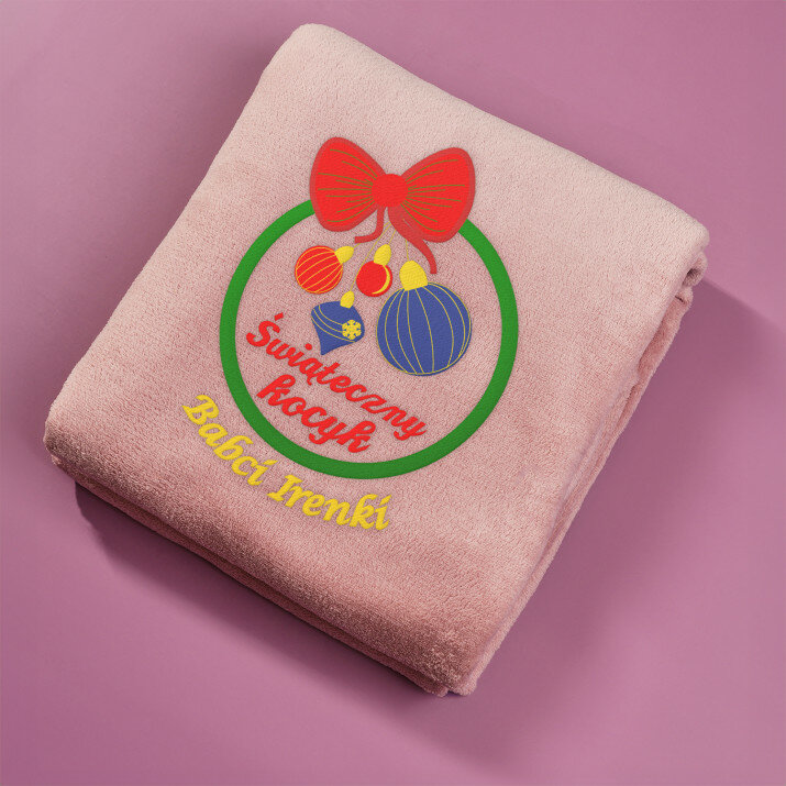 Koc o wymiarach 140 x 200 cm w kolorze szarym lub różowym, wykonany z wysokogatunkowego polaru, charakteryzuje się niepowtarzalną puszystością i miękkością, ozdobiony jednym z naszych personalizowanych haftowanych wzorów.