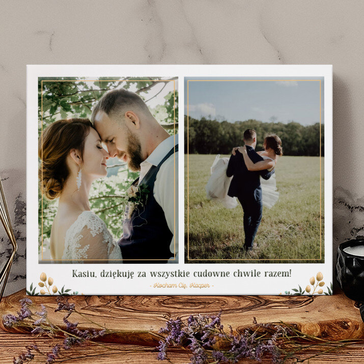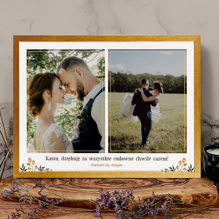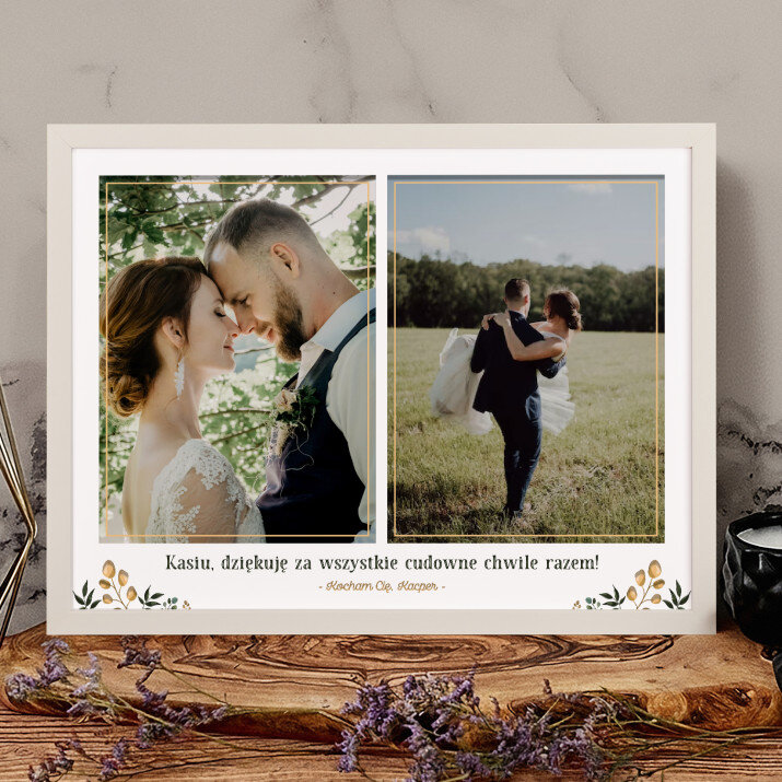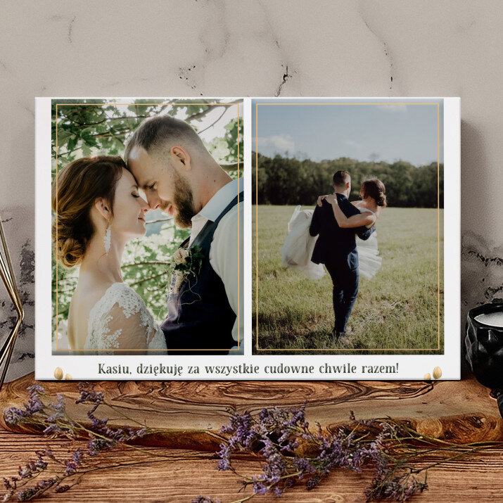 Piękna kompozycja Twoich zdjęć z kilkoma słowami prosto z serca oraz podpisami. Idealny prezent dla tych, z którymi łączy Cię mnóstwo wspomnień. Wystarczy wybrać ulubione fotografie najważniejszych dla Was chwil, a powstanie pamiątka, która zostanie z obdarowaną osobą na zawsze. To również niezwykle oryginalna i efektowna dekoracja do mieszkania.WYKONANIE