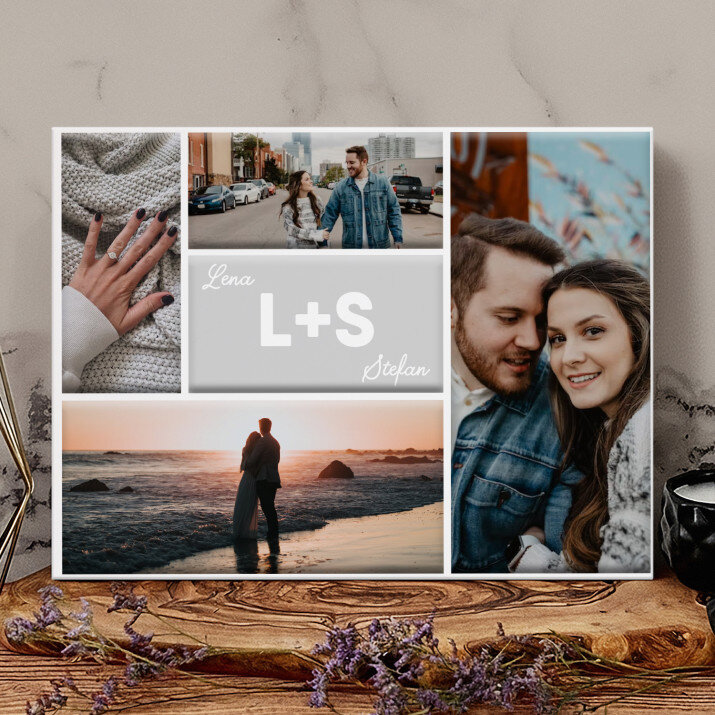 Piękna kompozycja Twoich zdjęć z kilkoma słowami prosto z serca oraz podpisami. Idealny prezent dla tych, z którymi łączy Cię mnóstwo wspomnień. Wystarczy wybrać ulubione fotografie najważniejszych dla Was chwil, a powstanie pamiątka, która zostanie z obdarowaną osobą na zawsze. To również niezwykle oryginalna i efektowna dekoracja do mieszkania.WYKONANIE
