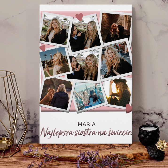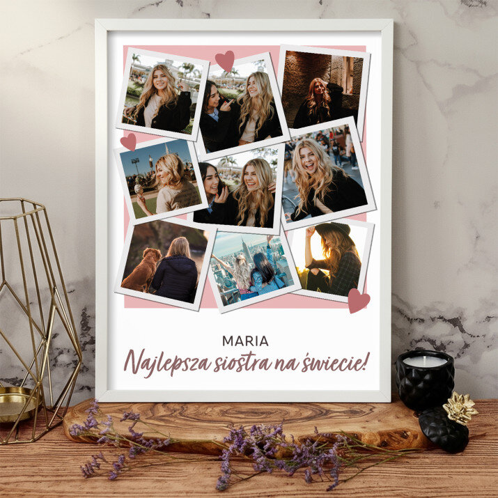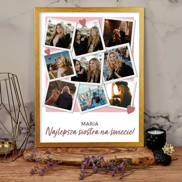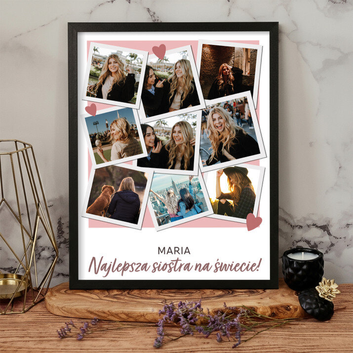 Kolaż ze zdjęć 'Prezent dla Siostry' w ramce czarnej to piękny gest. Pełen wspomnień i emocji.