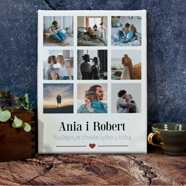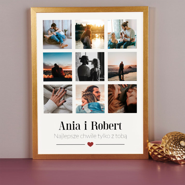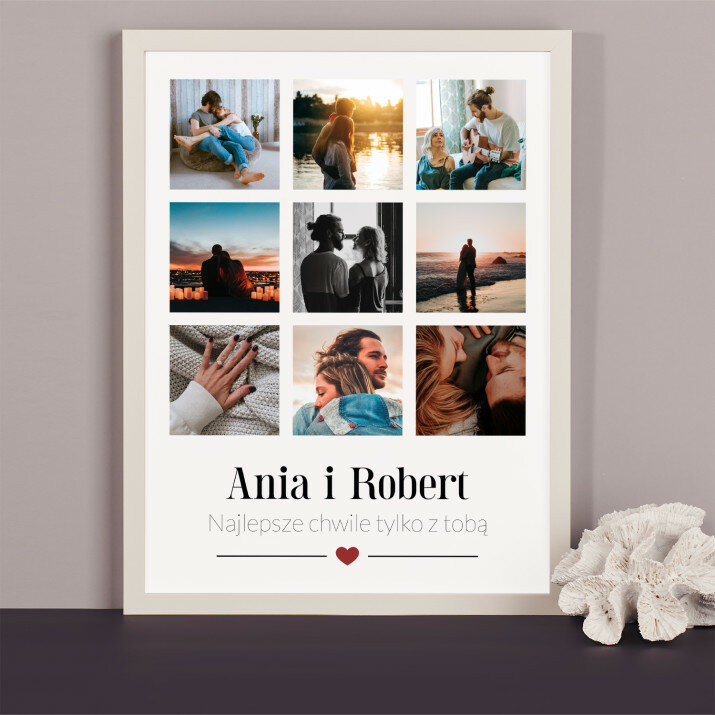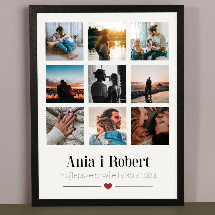 Piękna kompozycja Twoich zdjęć z kilkoma słowami prosto z serca oraz podpisami. Idealny prezent dla tych, z którymi łączy Cię mnóstwo wspomnień. Wystarczy wybrać ulubione fotografie najważniejszych dla Was chwil, a powstanie pamiątka, która zostanie z obdarowaną osobą na zawsze. To również niezwykle oryginalna i efektowna dekoracja do mieszkania.WYKONANIE