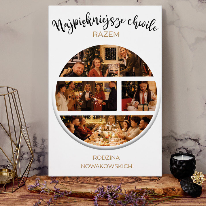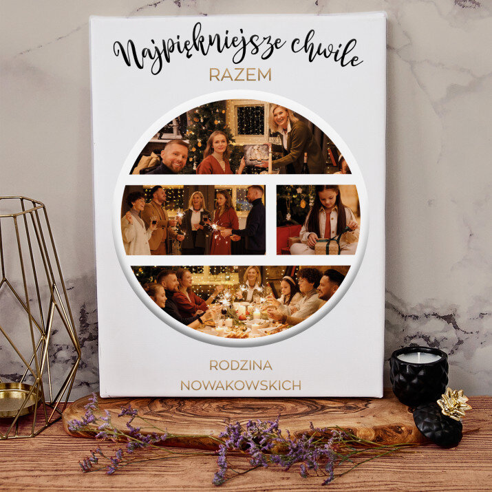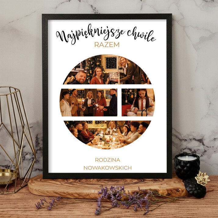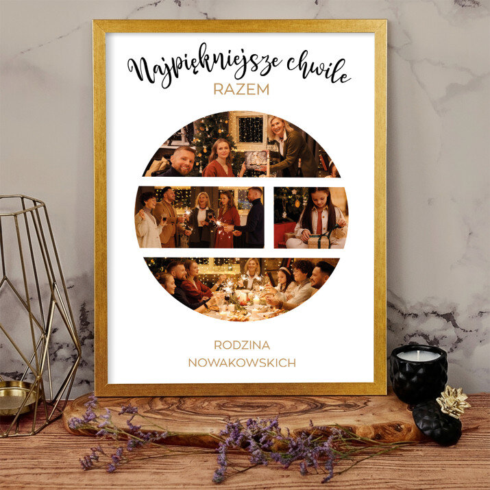 Piękna kompozycja Twoich zdjęć z kilkoma słowami prosto z serca oraz podpisami. Idealny prezent dla tych, z którymi łączy Cię mnóstwo wspomnień. Wystarczy wybrać ulubione fotografie najważniejszych dla Was chwil, a powstanie pamiątka, która zostanie z obdarowaną osobą na zawsze. To również niezwykle oryginalna i efektowna dekoracja do mieszkania.WYKONANIE
