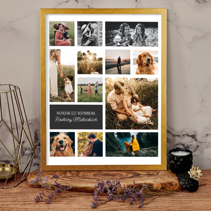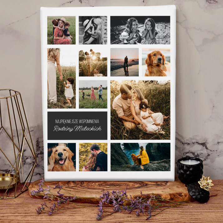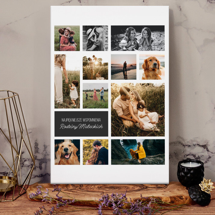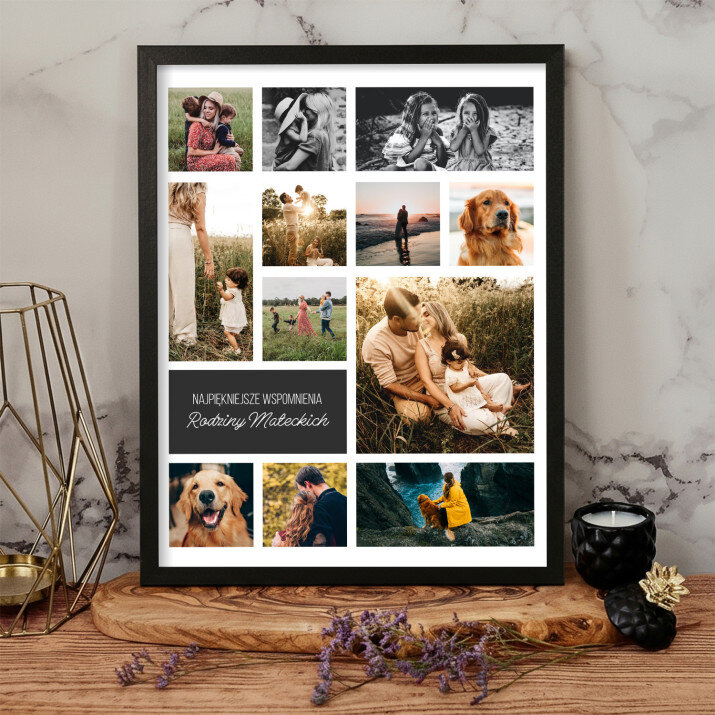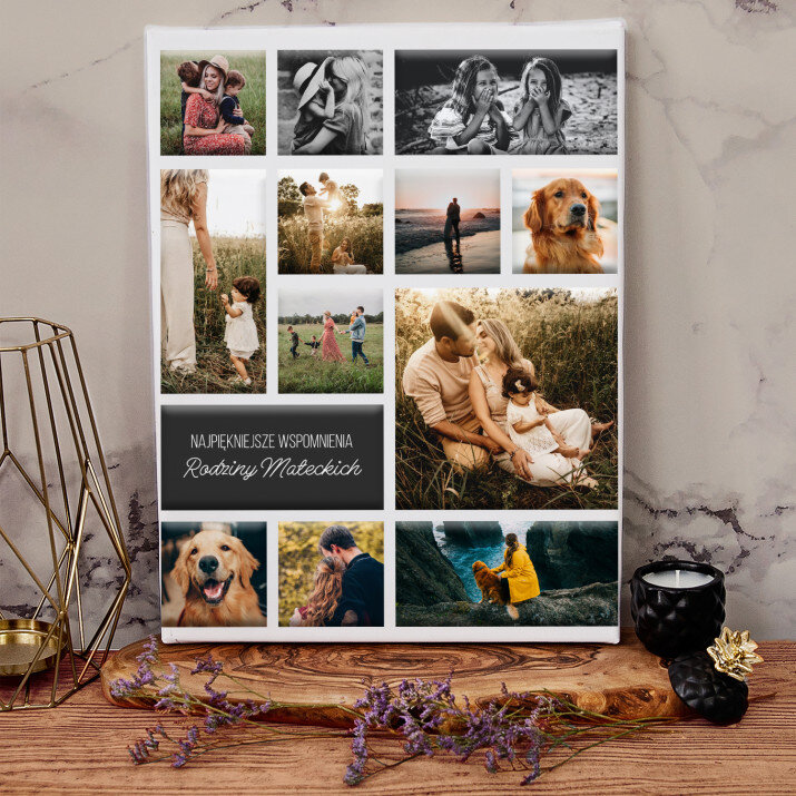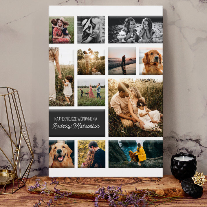 Piękna kompozycja Twoich zdjęć z kilkoma słowami prosto z serca oraz podpisami. Idealny prezent dla tych, z którymi łączy Cię mnóstwo wspomnień. Wystarczy wybrać ulubione fotografie najważniejszych dla Was chwil, a powstanie pamiątka, która zostanie z obdarowaną osobą na zawsze. To również niezwykle oryginalna i efektowna dekoracja do mieszkania.WYKONANIE