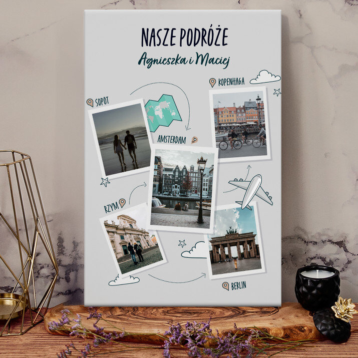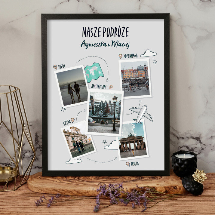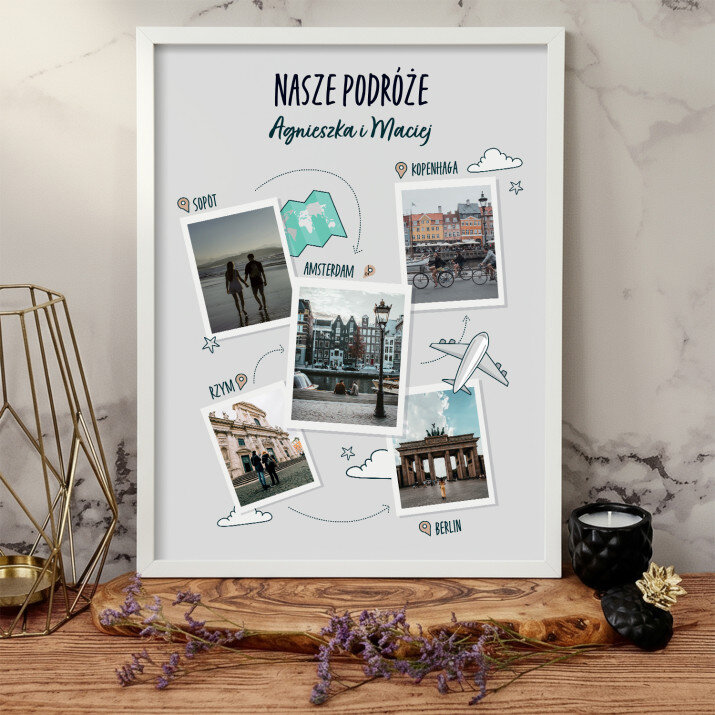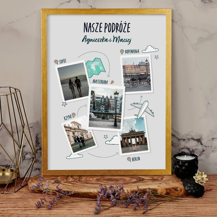 Piękna kompozycja Twoich zdjęć z kilkoma słowami prosto z serca oraz podpisami. Idealny prezent dla tych, z którymi łączy Cię mnóstwo wspomnień. Wystarczy wybrać ulubione fotografie najważniejszych dla Was chwil, a powstanie pamiątka, która zostanie z obdarowaną osobą na zawsze. To również niezwykle oryginalna i efektowna dekoracja do mieszkania.WYKONANIE