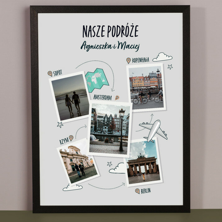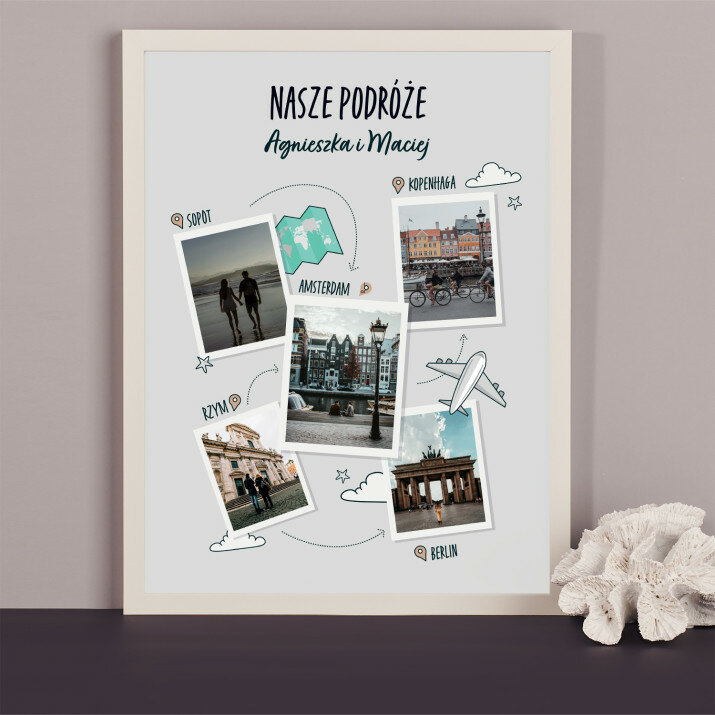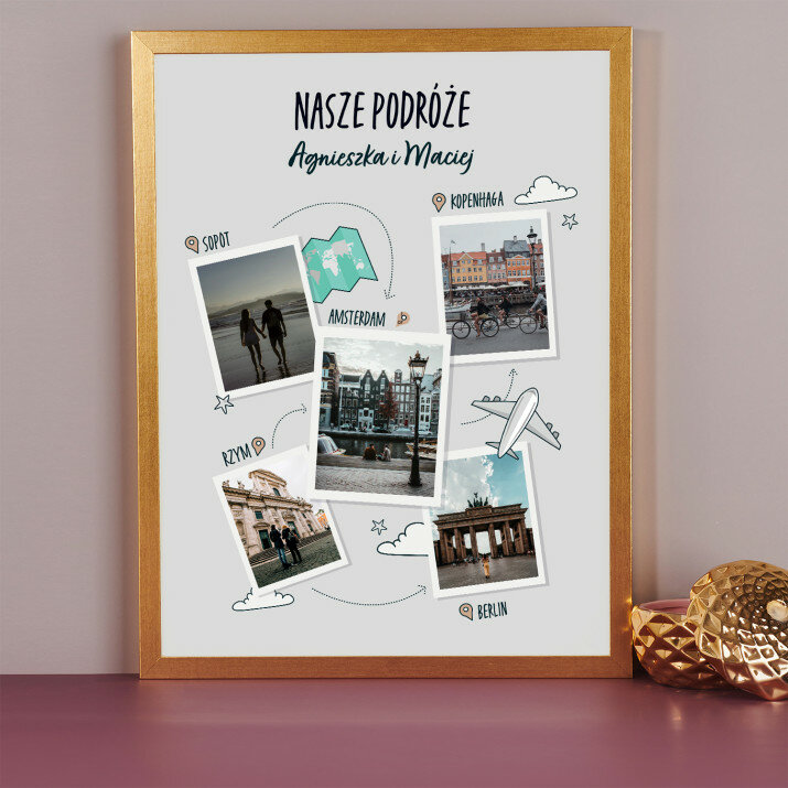 Do wyboru są 2 opcje finalnego produktu:- wydruk plakatu na papierze fotograficznym obramowany w ramkę 30 x 40 cm w jednym z trzech kolorów do wyboru: czarnym, białym lub złotym