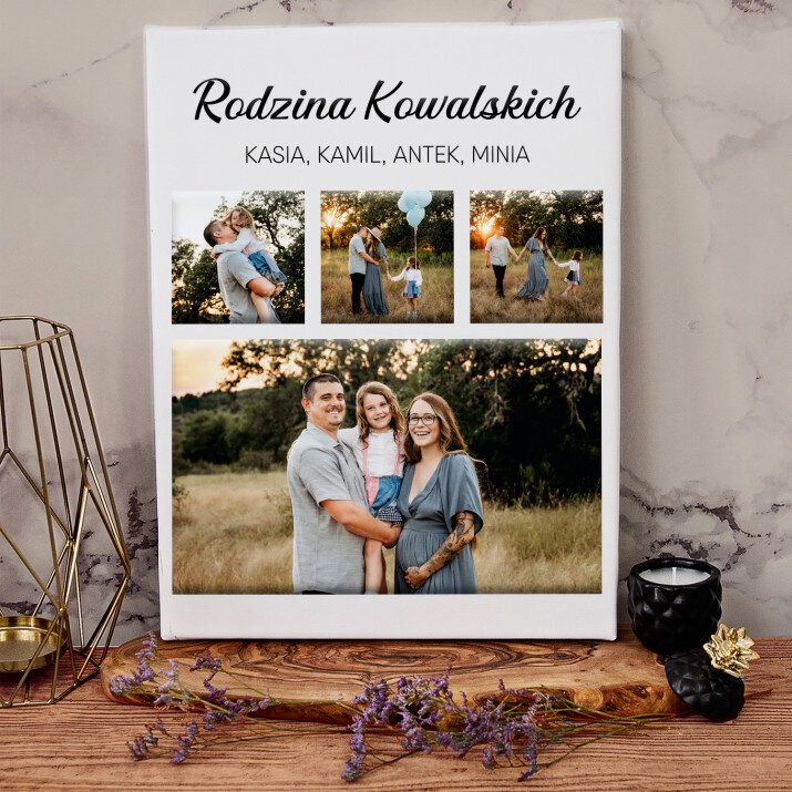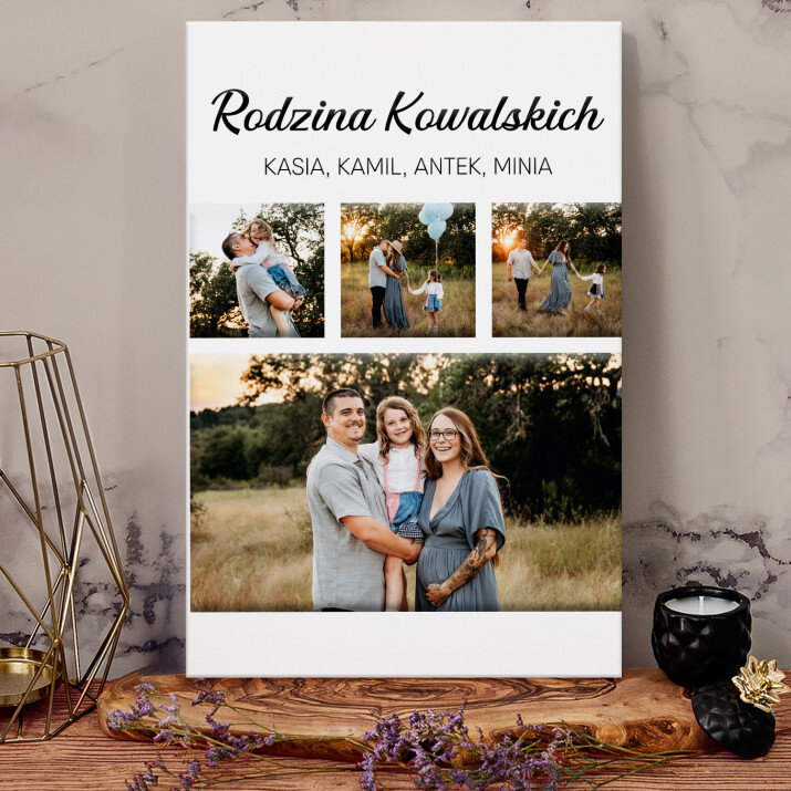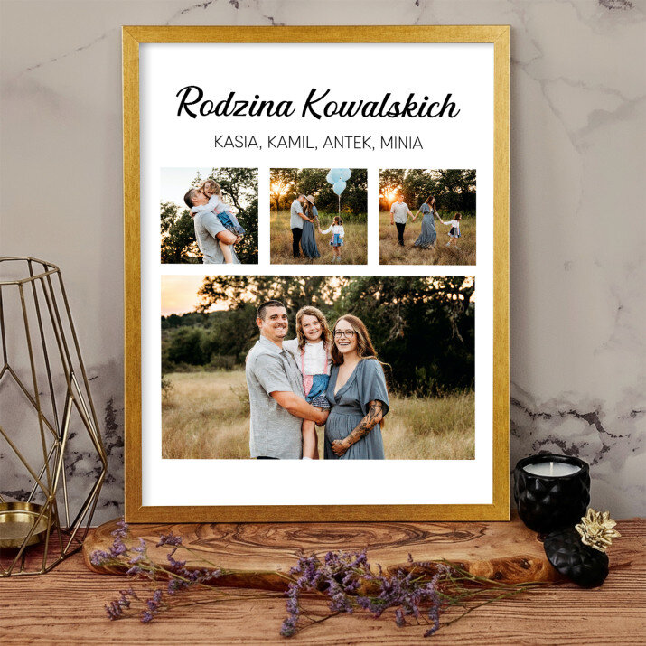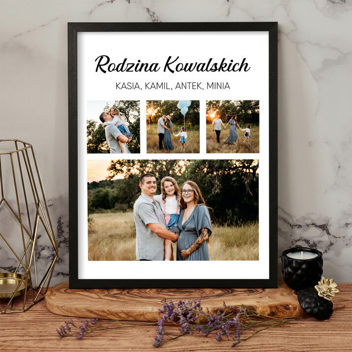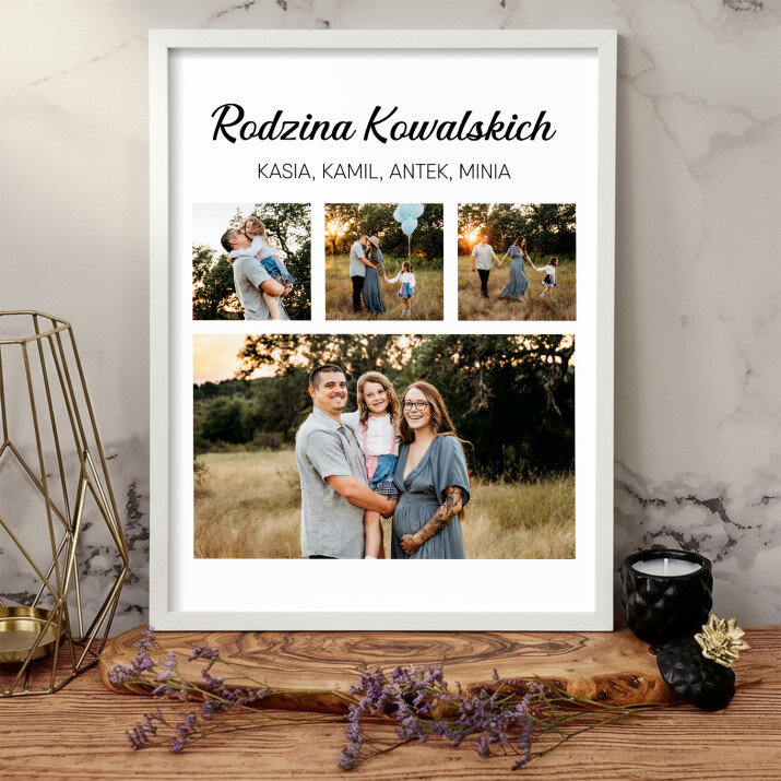 Piękna kompozycja Twoich zdjęć z kilkoma słowami prosto z serca oraz podpisami. Idealny prezent dla tych, z którymi łączy Cię mnóstwo wspomnień. Wystarczy wybrać ulubione fotografie najważniejszych dla Was chwil, a powstanie pamiątka, która zostanie z obdarowaną osobą na zawsze. To również niezwykle oryginalna i efektowna dekoracja do mieszkania.WYKONANIE