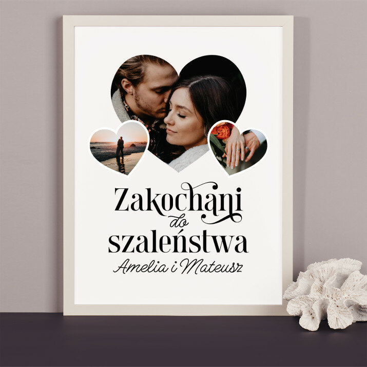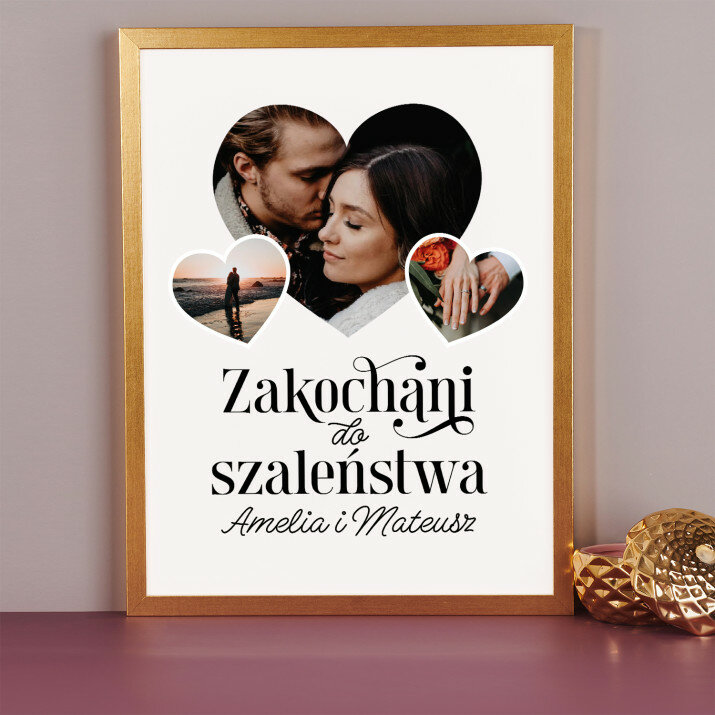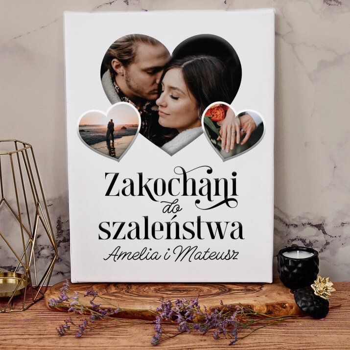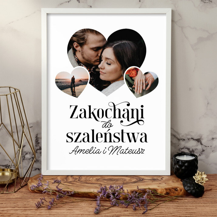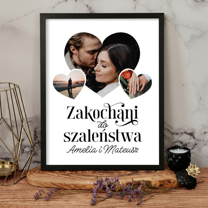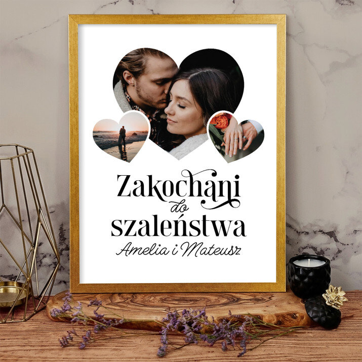 Piękna kompozycja Twoich zdjęć z kilkoma słowami prosto z serca oraz podpisami. Idealny prezent dla tych, z którymi łączy Cię mnóstwo wspomnień. Wystarczy wybrać ulubione fotografie najważniejszych dla Was chwil, a powstanie pamiątka, która zostanie z obdarowaną osobą na zawsze. To również niezwykle oryginalna i efektowna dekoracja do mieszkania.