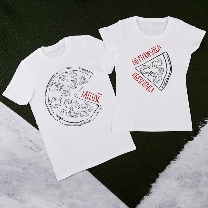 Prezent dla pary. Wierzysz w miłość od pierwszego ugryzienia? A może to właśnie ten rodzaj uczucia połączył Ciebie i Twoją druga połowę? Zestaw koszulek będzie świetnym prezentem dla Twojej pizzożernej sympatii - już macie idealny look na piątkowy wieczór!