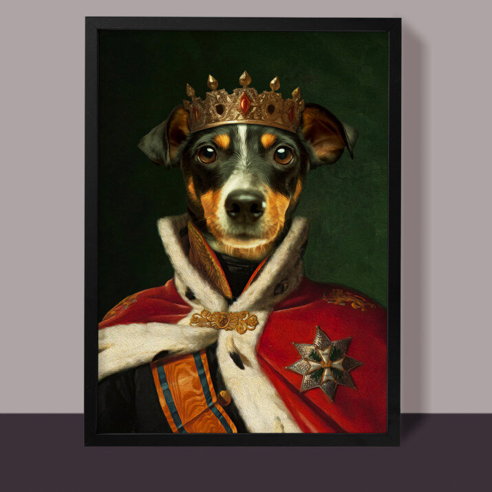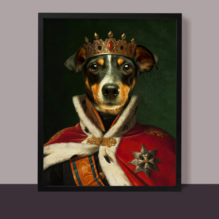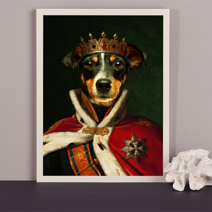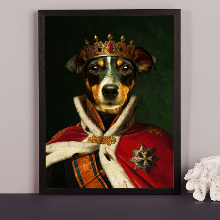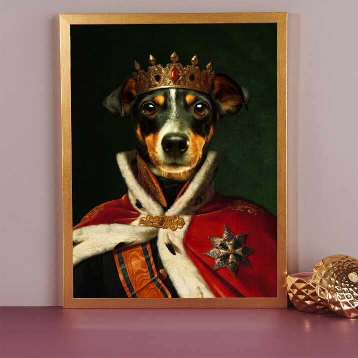 Twój pies bez wątpienia jest szlachetnie urodzonym, dostojnym paniczem, który zawsze zasługuje na najlepsze rarytaski. Dzięki wyjątkowemu portretowi każdy Twój gość od razu będzie wiedział, kto tak naprawdę króluje w Twoim domu.KRÓLEWSKI PORTRET