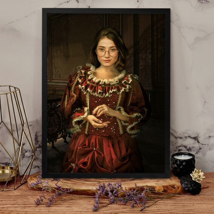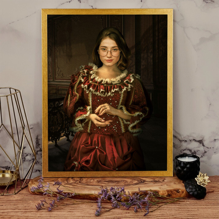 Ta ramka złota z portretem Królewny jest piękna i elegancka. Doskonała ozdoba wnętrza.