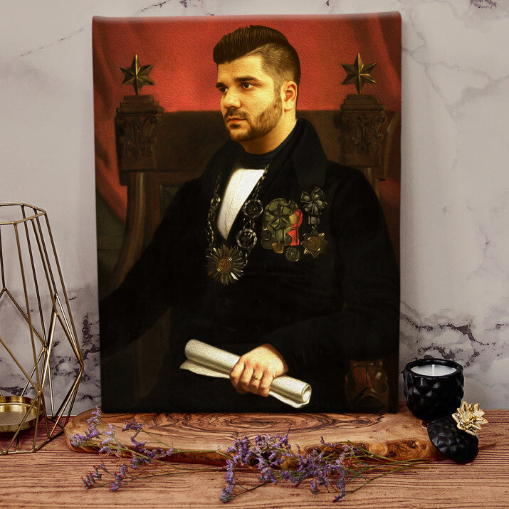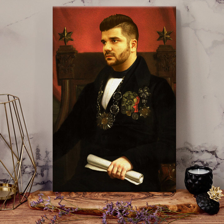 Taki obraz na płótnie to bez wątpienia niezwykle kreatywny prezent, którym zaskoczysz bliską Ci osobę. Królewski portret to oryginalna dekoracja ścienna, która będzie przyczyną wielu uśmiechów i istnym generatorem pozytywnej energii!KRÓLEWSKI PORTRET