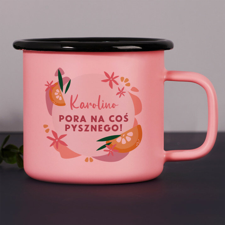 Stalowy kubek emaliowany z kolorowym nadrukiem. Wysoka jakość wykonania oraz eleganckie wykończenie sprawiają, że świetnie sprawdzi się zarówno w podróży, jak i w domowym zaciszu. Kubek dostępny jest w kolorze białym ze srebrną obwódką oraz w kolorze różowym o matowym wykończeniu z czarną obwódką.