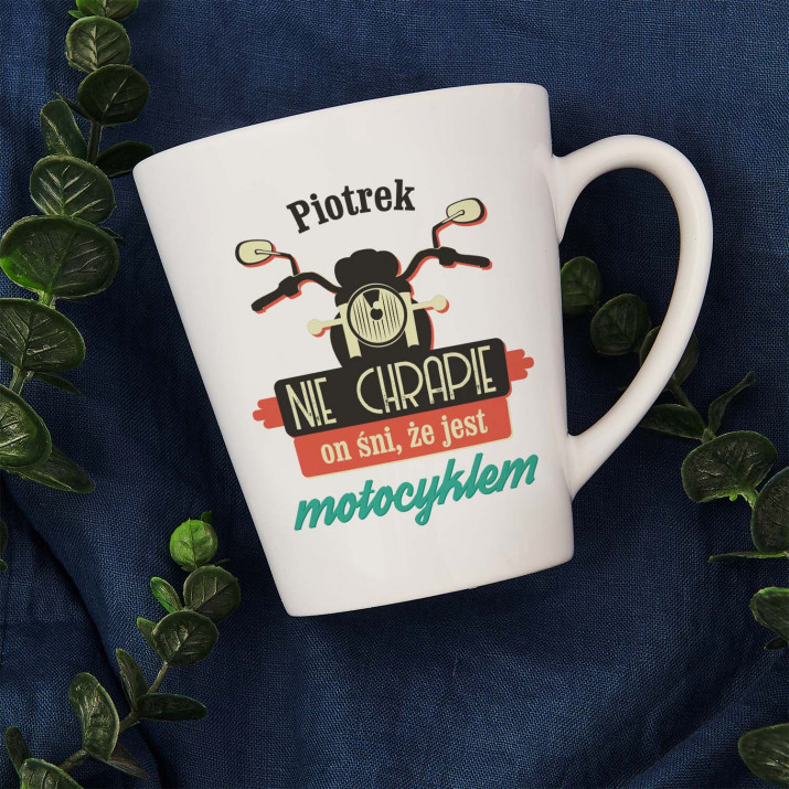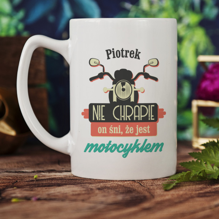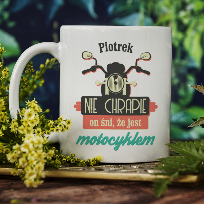 Kto ma wielką pasję, ten wie, że tym się po prostu żyje. Nawet podczas snu. Muzyk będzie śpiewał przez sen, kucharzowi przyśnią się jakieś nowe przepisy, z kolei spanie z piłkarzem stanowi ryzyko - no bo może kopnąć. A motocyklista? Może mu się przyśnić, że jest motocyklem, a wtedy będzie głośno! Podaruj ten kubek z zabawnym nadrukiem każdemu miłośnikowi dwóch kółek.Wykonanie