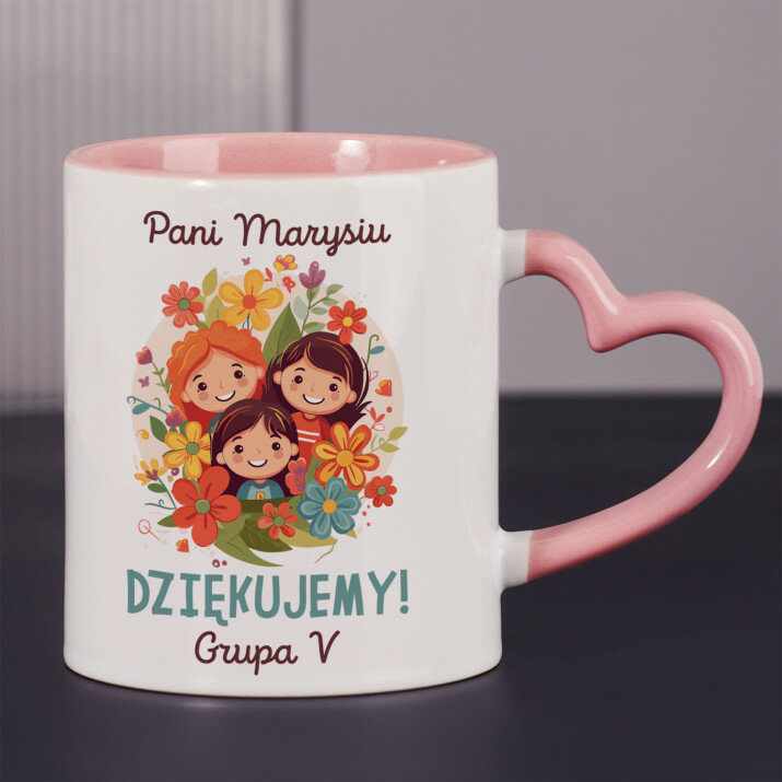 Dostępne są również kubki z uszkiem w kształcie serca i różowym środkiem, o pojemności 330 ml