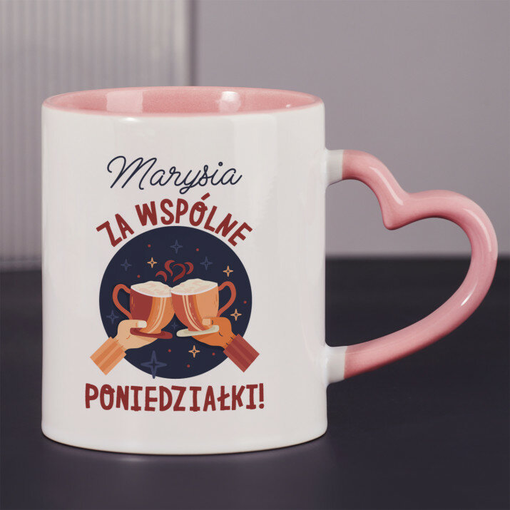 Dostępne są również kubki z uszkiem w kształcie serca i różowym środkiem, o pojemności 330 ml