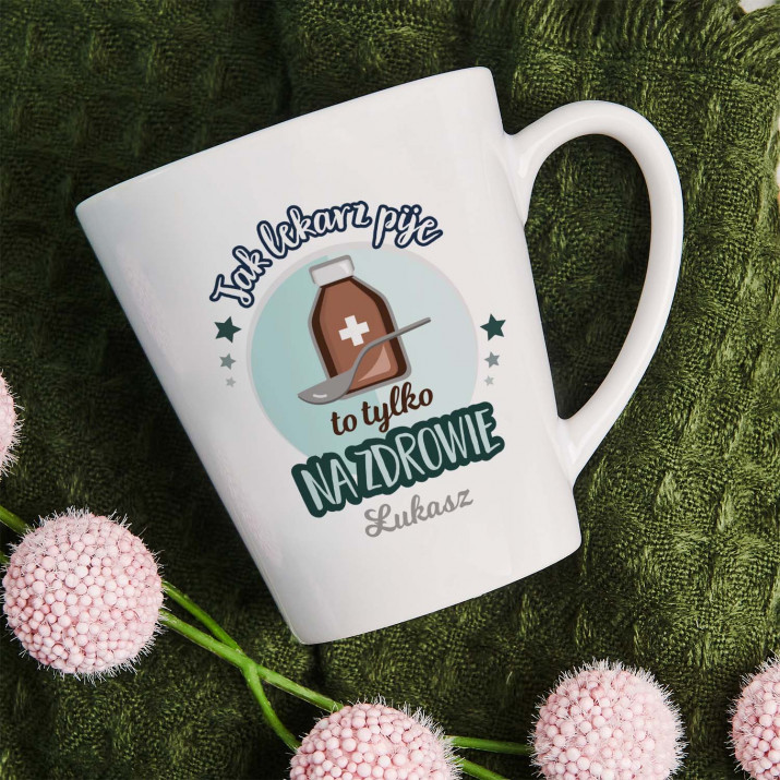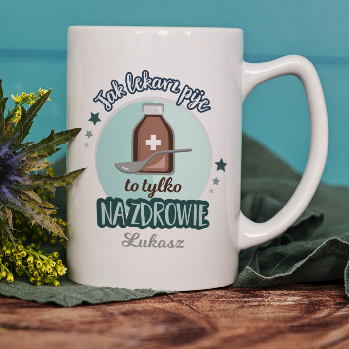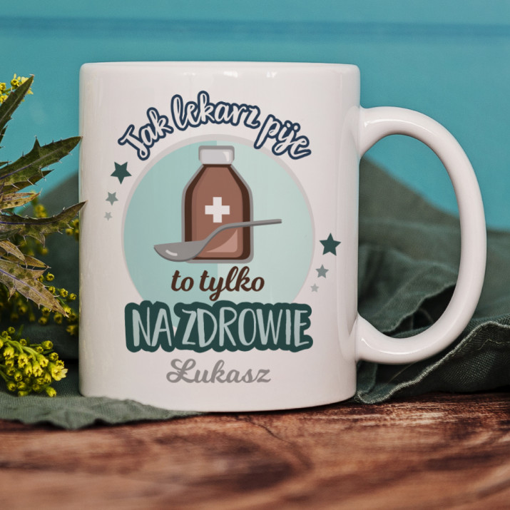 Kubek personalizowany z napisem 'Jak lekarz pije' to świetny prezent dla każdego lekarza. Numer 1 na liście prezentów dla pracowników służby zdrowia.
