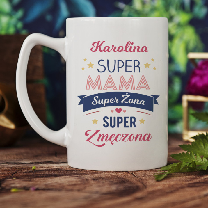 SUPER MAMA, SUPER ŻONA, SUPER ZMĘCZONA - KUBEK PERSONALIZOWANY