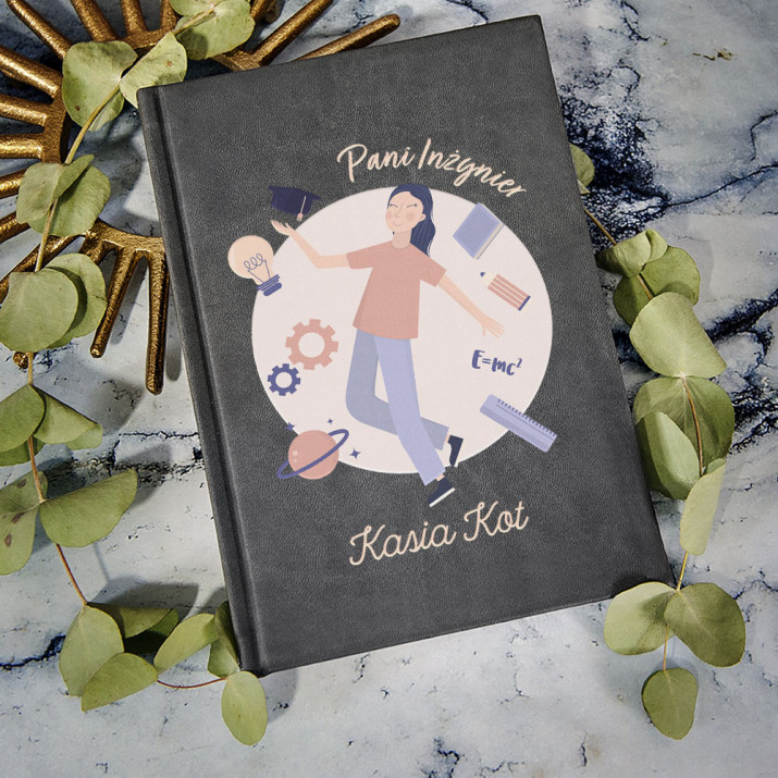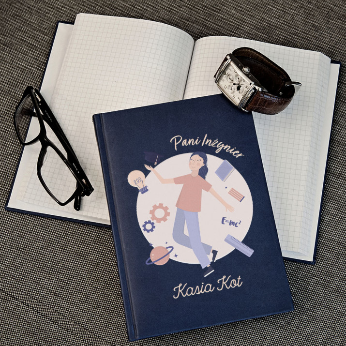 Notatnik książkowy w formacie A5 z wysokiej jakości nadrukiem UV.Notatnik wykończony jest miękkim materiałem i obszyty na brzegach.