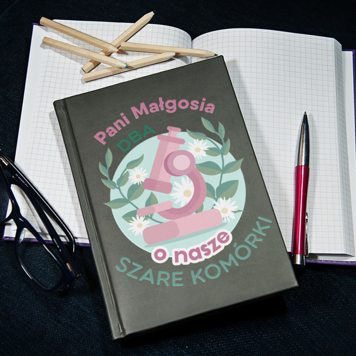 Notatnik książkowy w formacie A5 z wysokiej jakości nadrukiem UV.Notatnik wykończony jest miękkim materiałem i obszyty na brzegach.