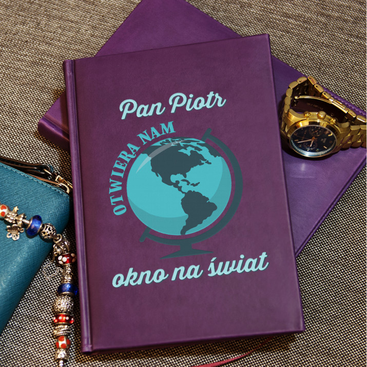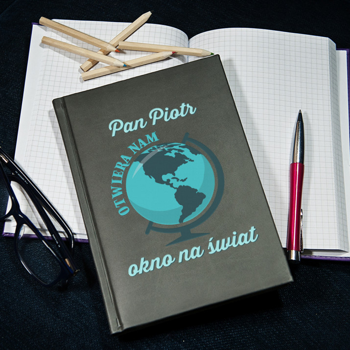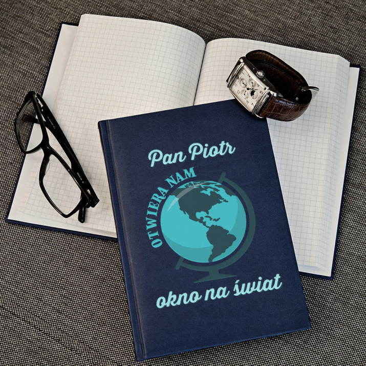Notatnik książkowy w formacie A5 z wysokiej jakości nadrukiem UV.Notatnik wykończony jest miękkim materiałem i obszyty na brzegach.