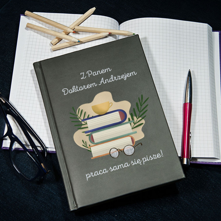 Notatnik książkowy w formacie A5 z wysokiej jakości nadrukiem UV.