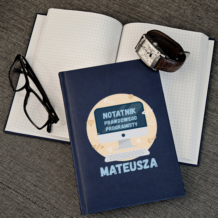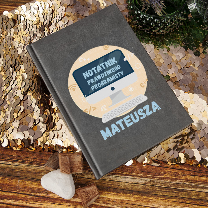 Prezent dla mężczyzny. Personalizowany notatnik z nadrukiem w formacie A5 to praktyczny prezent, który możesz podarować bliskiemu Twemu sercu programiście na każdą okazję.