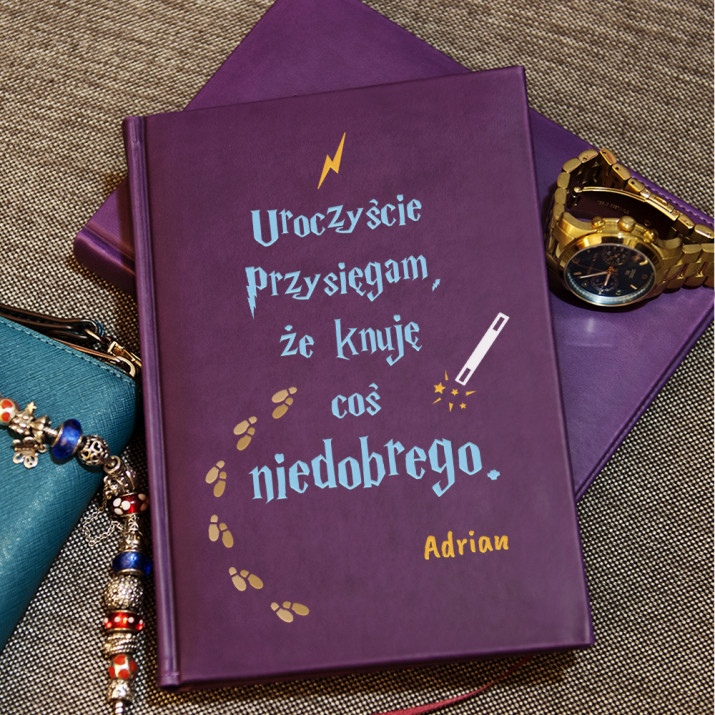 Nasze graficzne zaklęcie spowodowało, że teraz sam możesz poczuć się jak uczeń najsłynniejszej Szkoły Magii i Czarodziejstwa. Wystarczy, że weźmiesz do ręki swoją różdżkę (tj. ulubiony długopis), a nasz notatnik stanie się Twoją własną wersją magicznej Mapy Huncwotów!